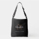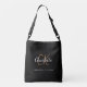 Black gold monogram name initials script crossbody bag