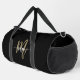 Stay stylish on the go with the Black Gold Monogram Name Script Sports Duffle Bag. Designed with a sleek black background and a personalized gold monogram in elegant script, this versatile bag combines fashion and function. Featuring a spacious main compartment, durable straps, and multiple pockets, it’s perfect for the gym, travel, sports, or daily use. Whether you're heading to a workout, weekend getaway, or practice session, this modern and sophisticated duffle bag adds a luxurious and personalized touch to your essentials.