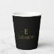"Elevate your event with these Black & Gold Monogram Paper Cups. Featuring a chic black design with a personalized gold monogram, these cups are perfect for weddings, parties, and special occasions, adding a touch of elegance to your beverage service."