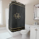 A black background decorated with faux gold stripes. Personalize and add your monogram initioals and first name.