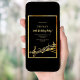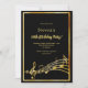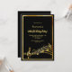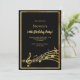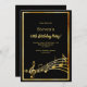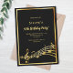 A trendy, modern 50th (or any age) birthday party invitation card for both men and women. A classic black background, with faux gold frame and music notes, golden coloured letters. Templates for your party information.