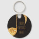 Black gold music notes monogram name keychain