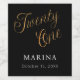 A black background. Twenty One written with a faux gold script. Personalize and add a name and date.