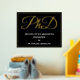 A PhD graduation party welcome sign poster with gold foil, white text, and a black background. Simply add your information, add this poster to your cart, and celebrate this major accomplishment.