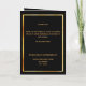An elegant 4-page program. A black background, a faux gold frame and space for your photo on the front. Personalize and add name, dates and your text.