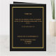 An elegant 4-page program. A black background, a faux gold frame and space for your photo on the front. Personalize and add name, dates and your text.