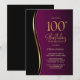 Black Gold Pink 100th Birthday Party Invitation