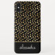 Black and Gold Faux Foil Hand Drawn Polka Dots Monogram Personalized Add Your Name Smart Phone Case. Please contact the designer for customized matching items.