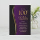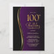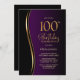 Invite your friends and loved ones with this modern black, gold and purple 100th birthday party invitation. The customizable text area in this invitation template allows you to effortlessly include all the necessary details for your special birthday celebration, including the date, time, venue, and RSVP information. A variety of paper types and corner styles are available for your unique invitations, along with the option to download if you prefer a digital format.
