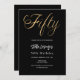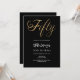 A modern, stylish invitation for a 50th birthday party for both him and her. Black background and the word Fifty written with large faux gold letters. Personalize and add a name and party details.