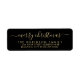 Script moderne noir et or Nom de famille Nom de famille Noël Retourner l'adresse Étiquettes. Doté d'un joli script de police de calligraphie écrit à la main avec "Joyeux Noël". Idéal pour Noël, facile de les personnaliser avec vos noms et informations d'adresse de retour.