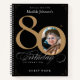 Black Gold Script Elegant 80th Birthday Guestbook Notebook. And elegantly designed special birthday celebration, featuring a custom photo of birthday person and script calligraphy with vintage flourish elements. Add photo inserts to this binder to make it a wonderful album to store all your photos and memories of the celebration! Need help? Simply contact me!