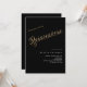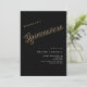 A modern minimalist Quinceañera invitation. Classic black background and the word Quinceanera written with large letters in faux gold. Personalize and add a name and party details.