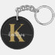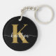 This modern black keychain with your first name in a trendy script font in white and your first initial in a modern cap font in gold is perfect for your keys. It's stylish and trendy and yet very classic.