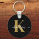 This modern black keychain with your first name in a trendy script font in white and your first initial in a modern cap font in gold is perfect for your keys. It's stylish and trendy and yet very classic.