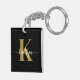 This modern black keychain with your first name in a trendy script font in white and your first initial in a modern cap font in gold is perfect for your keys. It's stylish and trendy and yet very classic.