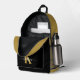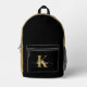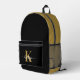 This simple, elegant black backpack with your first name in a trendy script font in white and your first initial in a modern cap font in gold is perfect for you.  It's stylish and trendy and yet very classic. It will be fabulous for school, the gym, outings, hikes, shopping, biking, etc.