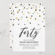 Celebrate your special day with this minimal 40th birthday party invitation. This design features a stylish lettering script "Forty" with hexagon-shaped confetti with a black & gold colour combo. More designs available at my shop BaraBomDesign.