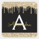 Black Gold Sparkle Glitter Monogram Square Sticker