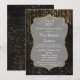 A lovely black and gold graduation party invitation featuring sparkling gold hanging decoration at the top with starry bling in the background. This Class Of graduation invite is perfect for high school, university, college or any type of grad school celebration.