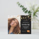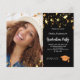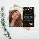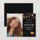 Add your own vertical size photo of the graduate. A classic black background colour, decorated with faux gold stars. Personalize and add a name and party details.
