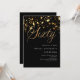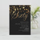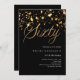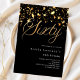 A modern, stylish invitation for a 60th birthday party. Black background and the word Sixty written with large faux gold letters. Decolrated with golden stars. Personalize and add a name and party details.