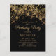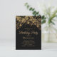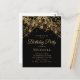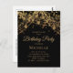Customized birthday party invitation postcard for women with glittering gold string lights and sparkling bokeh on a black background. Text, fonts and wording are completely customizable. Contact us for help with customization or matching products.