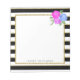 Features a lovely pink and blue rose motif, and a horizontal stripe pattern in black, white and gold - so chic! Personalize the notepad with your own name or text.