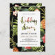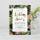 This unique tropical bridal shower invitation features a beautiful tropical floral pattern with a stylish typography.