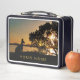 A beautiful, stylish, and modern black and gold metal lunch box with a gorgeous sunset image featuring (the outline of) a kangaroo, a tree and the world famous Glass House Mountains in Queensland, Australia. The spectacular golden sunset with the reflection in the water gives the image great colour. Personalize it with your own name! Make your (kids) lunch stand out from the rest
