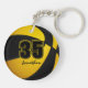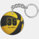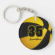 This cool basketball themed acrylic keychain for boys or girls features the realistic image of a basketball that has recolored alternating black and gold panels upon which you can easily customize the athlete's name and jersey number on the front and back - by katz_d_zynes