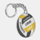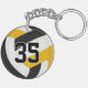 This team colours volleyball themed keychain for girls or boys features a realistic looking black, gold and white volleyball upon which you can customize the player's name, jersey number and court position, plus school or club name and mascot name in a varsity letter style font - by katz_d_zynes