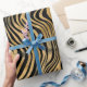 Modern and bold black and gold tiger stripes pattern add a little jungle life to the decor.