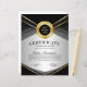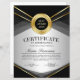 Professional black and gold vertical certificate of appreciation flyer template featuring a grey gradient background and a black and shiny gold medal with a leaf outlining. Perfect for school, businesses, churches, and more! Customize the certificate to your liking.