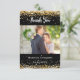 A modern wedding Thank You photo card. A black background decorated with faux gold confetti. Personalize and add your photo and thank you note.