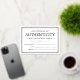 Elegant and minimalist certificate of authenticity in black, gold, and white to which you can add your name or business name.