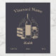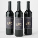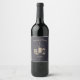 A bottle label sticker in black and gold colours with an illustration of a wine bottle placed in front of a wooden crate and accompanied by a cork stopper, a wine glass and a grape. It could be used to sell or offer your artisanal wine with to your friends or family (at a wedding, for example).