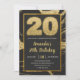Black Golden 20th Birthday Invitation