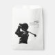 This bachelor party favour bags design features a white background with a striking black silhouette of a golfer. The mood of this design is one of camaraderie and adventure, promising a memorable and enjoyable bachelor party experience. This favour bag is for a bachelor party event, a golf-themed getaway. It's a chance for the groom and his closest friends to enjoy a day on the golf course followed by evening festivities, celebrating the groom's upcoming wedding in style. Perfect for golfers, this will be an ideal way to create lasting memories. Perfect for golf enthusiasts and those who enjoy outdoor activities. The favour bag is designed to appeal to the audience, promising an unforgettable bachelor party experience filled with fun, laughter, and camaraderie.