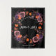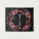 An elegant black wedding celebration tapestry with darkly beautiful Fall botanicals creating a loose wreath "Til Death Do Us Part" is editable. Add your newlywed couple names and wedding date. Use this wall hanging as decor or a backdrop for wedding guests photos. It will be an enchanting addition to your unique wedding day.