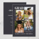 Celebrate your graduation with this black background Modern Graduation Invitation Card with Photos. Designed with a sleek, contemporary layout, this card features space for four photos, allowing you to share your favorite senior moments in one stylish design. The back of the card allows for a grad party invitation.