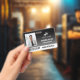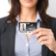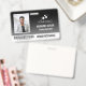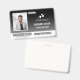 Employee ID badge with a clean minimalist design in black and white. Add a photo of the employee along with name and profession against a black gradient background. Personalize further with your business logo and bar code.