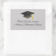 Finish a great graduation party with these stickers on your favours. "Thank you for coming to ........ Graduation party!" There's a black cap in the top centre with a silver/grey background. Check out the many matching other products we have in our store: banners, napkins, invitations, and much more.