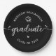 Black Graduation White Modern Script Hearts Cap Paper Plate