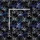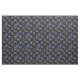 Camouflage fabric in fields of blue, charcoal, and black and a pattern of skull outlines in white.