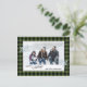 Unique, classic, trendy, pretty and decorative Holiday card. Cute Happy Holidays greeting text and room to customize or personalize with a photo, family name (or individual names) and message of your choice, framed by two silvergrey coloured snowflakes on a classy dark green and black coloured Buffalo lumberjack tartan check background.