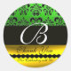 BLACK GREEN GOLD DAMASK MONOGRAM Thank You Classic Round Sticker