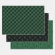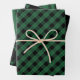 Rustic wrapping sheets, perfect for Christmas and bachelor parties and birthdays, with three matching patterns in black and green: plaid, deer, and pine trees.