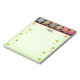 Enjoy your love of quilting with this notepad with a black quilt block header at the top and customized with your name below the header. Great gift for your quilter freinds. Quilt art is based on favourite patchwork quilt blocks such as the log cabin and star blocks plus unique blocks in vibrant and dynamic colours of orange, yellow, pink, turquoise, and lime green. The backagrouns is black that makes the colours pop for a beautiful colour palette. The writing part of this notepad is light green with small flowers decorating the edges. Quilt art is original art from fabric and quilt designer Phyllis Dobbs. This art is available on other products and in several colour backgrounds. Quilt business products are available in Phyllis' BusinesswithFlair store. Match with coordinating stamps, envelopes, stickers and return address labels.
