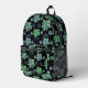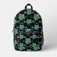 Black Green Teal Botanical Garden Pattern Printed Backpack